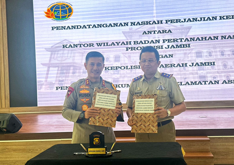 Kegiatan yang dilaksanakan di Aula Lantai III Gedung Siginjai Polda Jambi tersebut dihadiri langsung oleh Kapolda Jambi Irjen Pol Rusdi Hartono dan Kakanwil ATR/BPN Provinsi Jambi Agustin Herson Samosir.