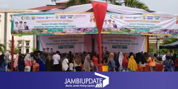 JAMBIUPDATE.CO, MUARASABAK- Gerakan Pangan Murah atau pasar murah yang digelar Pemerintah Kabupaten Tanjabtim melalui Dinas Ketahanan Pangan diserbu oleh warga, Rabu (20/3) kemarin.