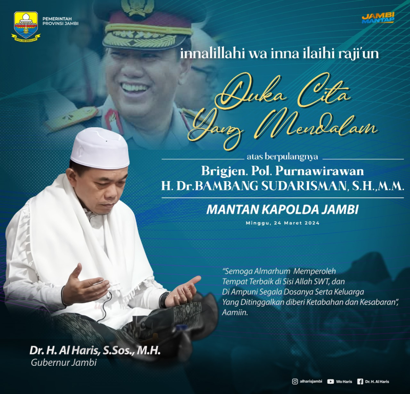 Berita duka lainnya pada hari yang sama juga datang dari mantan Kapolda Jambi Brigjen. Pol. H. Dr. Bambang Sudarisman, SH,MM.