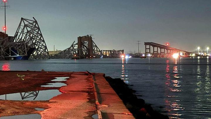 Sebuah video langsung yang diposting di YouTube menunjukkan sebuah kapal kargo menabrak jembatan, setelah itu beberapa bagiannya runtuh ke Sungai Patapsco. Video yang belum terverifikasi yang diposting di media sosial X juga menunjukkan dampak dan keruntuhannya.