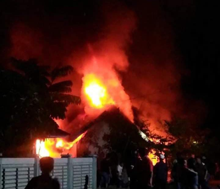 “satu unit rumah yang hangus terbakar, api baru diketahui ketika anak kecil yang lewat api sudah besar,” ujar warga.