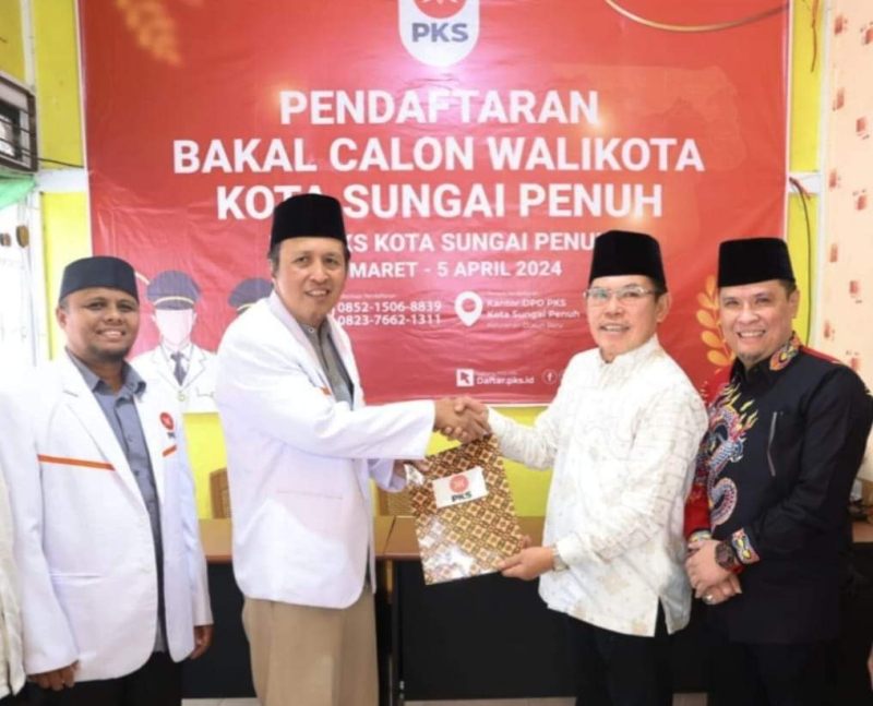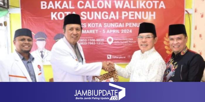 Walikota Sungai Penuh Ahmadi Zubir resmi mendaftarkan di PKS Sungai Penuh untuk diusung mencalonkan diri sebagai Cawako Sungai Penuh, Jumat (5/4/2024). Wako Ahmadi nampak didampingi sejumlah orang kepercayaan ke kantor PKS Sungai Penuh.