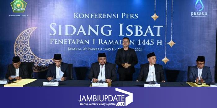 JAMBIUPDATE CO,- Sidang Isbat penetapan 1 Syawal 1445 Hijriah yang juga menjadi penentu hari raya Idulfitri akan digelar pada Selasa, 9 April 2024. Gelaran sidang Isbat Lebaran 2024 itu bertepatan dengan Ramadan hari ke-29 yang ditetapkan oleh pemerintah.