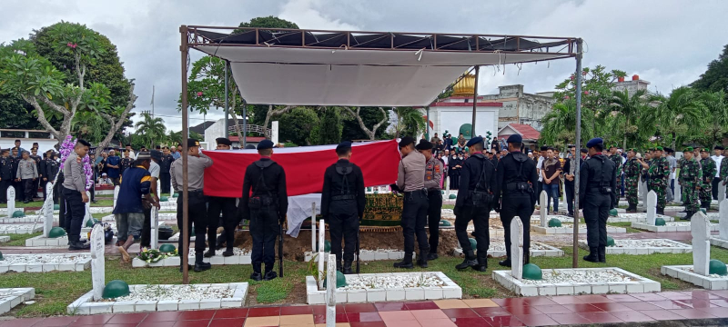 Terlihat Kapolda Jambi Irjen Pol Rusdi Hartono bertindak sebagai inspektur upacara pemakaman yang digelar secara kedinasan. Turut hadir para Gubernur Jambi Al Haris, Sekda Provinsi Jambi Sudirman, para pejabat utama Polda Jambi, Kapolresta Jambi dan jajaran.