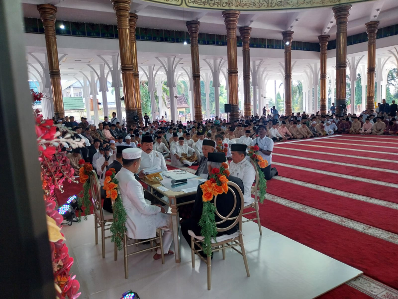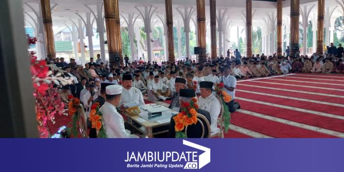 JAMBIUPDATE.CO, JAMBI- Akad Nikah putri sulung Gubernur Jambi Al Haris berlangsung di Masjid Agung Al-Falah Jambi, Jum'at (19/4/2024) pagi.