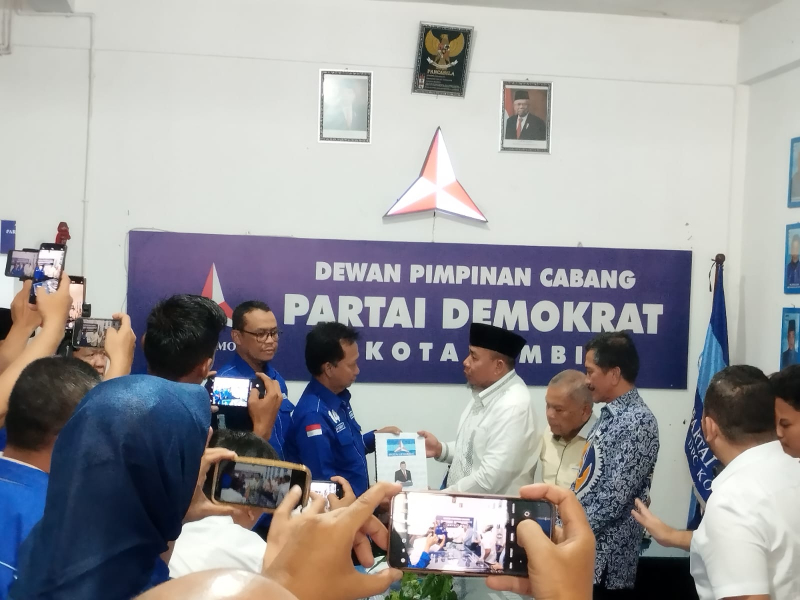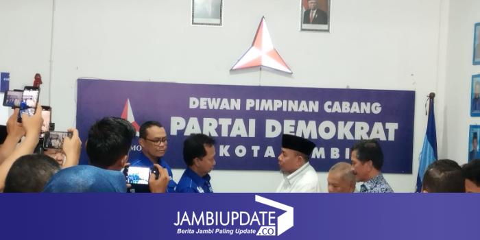 JAMBIUPDATE.CO, JAMBI- Bakal calon Walikota Jambi H. A. Rahman resmi mengembalikan formulir pendaftaran calon Walikota Jambi di Partai Demokrat Kota Jambi, Senin (22/4/2024). HAR hadir bersama tim pemenangan disambut langsung oleh tim penjaringan partai Demokrat.