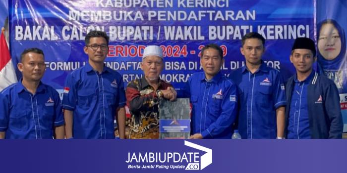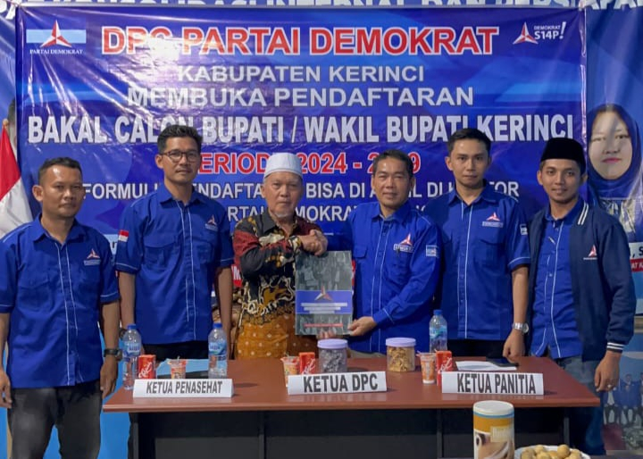 Dr Deri resmi mendaftar di Partai Demokrat Kerinci untuk maju Pilkada Kerinci. Lewat perwakilan Dr Deri yakni Hatirman yang merupakan ketua Lembaga Adat Tigo Luhah Semurup mendaftarkan langsung di kantor Demokrat Kerinci, Siulak Deras, Senin malam (22/4/2024).