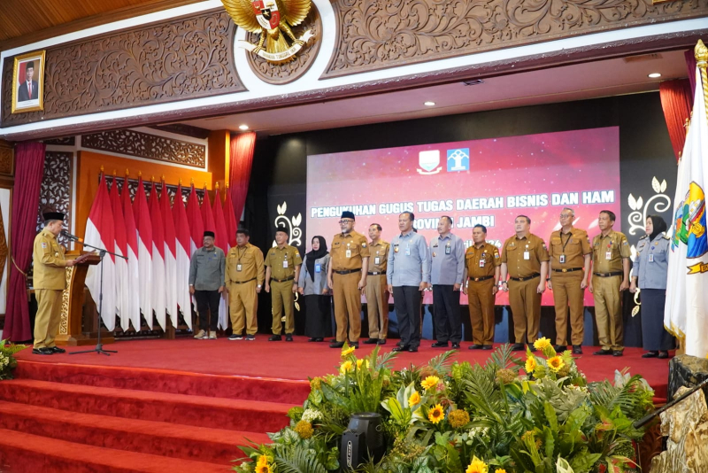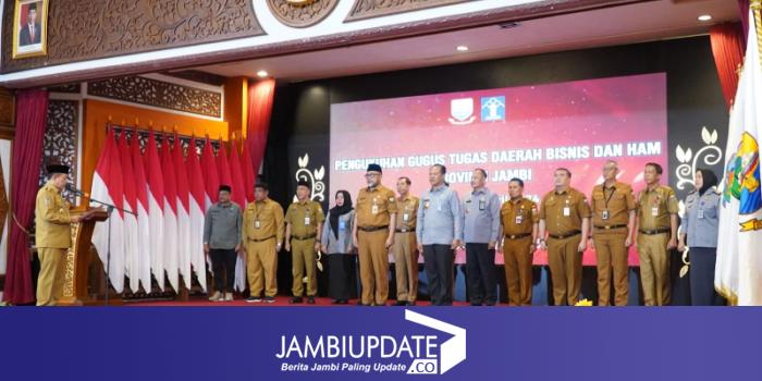 JAMBIUPDATE.CO, JAMBI- Pemerintah Provinsi Jambi melaksanakan Pengukuhan Gugus Tugas Daerah Bisnis dan Hak Asasi Manusia (HAM) Provinsi Jambi, bertempat di Auditorium Rumah Dinas Gubernur Jambi, Selasa (23/04/2024) siang.