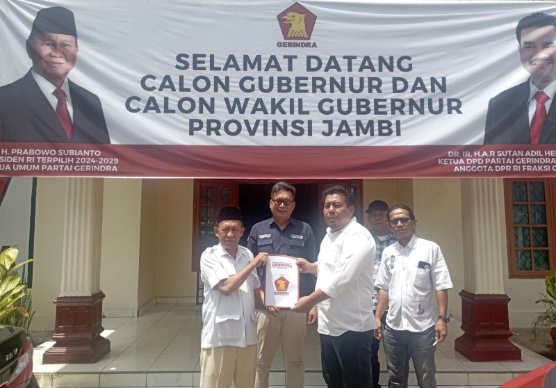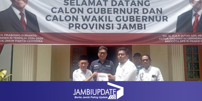 JAMBIUPDATE.CO, JAMBI- Bakal Calon Gubernur (Bacagub) Romi Hariyanto resmi mengambil formulir di Partai Gerindra Provinsi Jambi, Sabtu (27/4/2024). Sama seperti sebelumnya, Bupati Tanjung Jabung Timur (Tanjabtim) ini mengirim utusannya.
