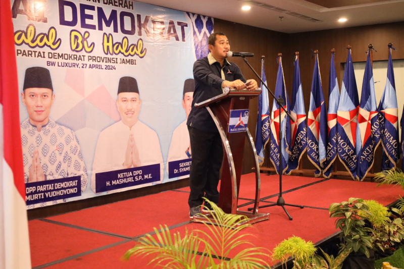 Hal ini disampaikannya dalam kegiatan Halal bi Halal Partai Demokrat provinsi Jambi di hotel BW Luxary Jambi, Kota Jambi, Sabtu (27/04/2024).