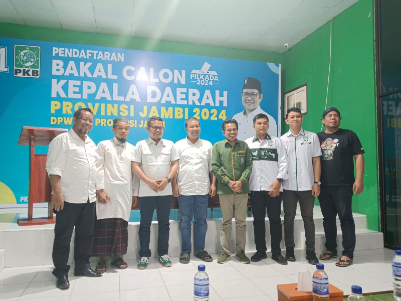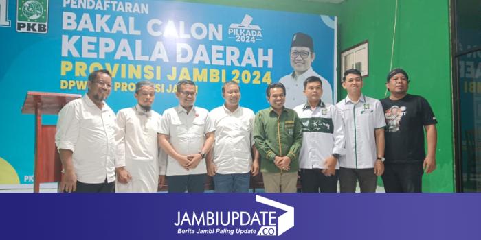 JAMBIUPDATE.CO, JAMBI- Bakal Calon Gubernur (Bacagub) Jambi Romi Hariyanto resmi mengembalikan formulir pendaftaran Calon Gubernur (Cagub) di DPW Partai Kebangkitan Bangsa (PKB), Sabtu malam (27/4).