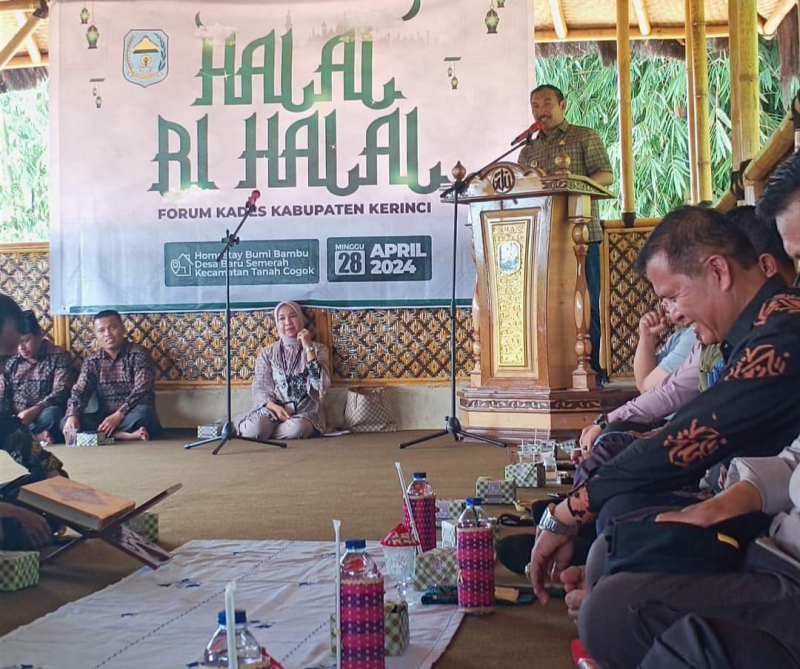 JAMBIUPDATE.CO, KERINCI– Pj Bupati Kerinci, Asraf, menghadiri acara Halal Bi Halal Kades 8 Kecamatan diwilayah Kerinci Hilir yang bertempat di Home Stay Bumi Bambu Desa Baru Semerah pada Minggu (28/04/2024).