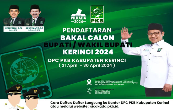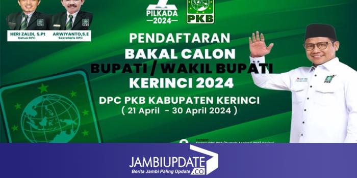 JAMBIUPDATE.CO, KERINCI- Hingga hari ini (29/4/2024) sudah 10 kandidat calon bupati Kerinci mengambil formulir dan mendafyata di PKB Kerinci. Ketua PKB Kerinci Herizaldi kepada Jambi Ekspres mengatakan yang mengambil formulir sudah 8 sedangkan yang mendaftar ada 4 kandidat.