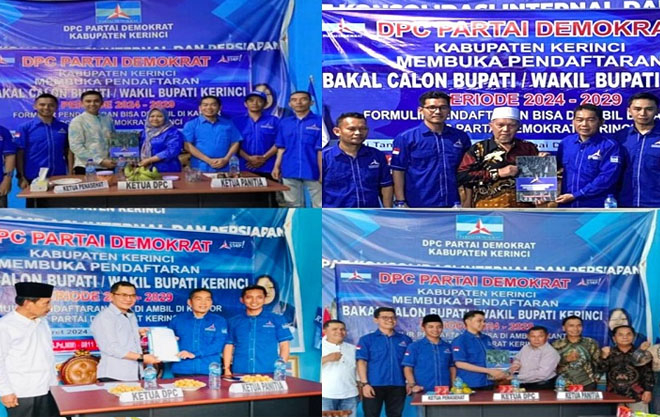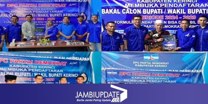 JAMBIUPDATE.CO, KERINCI- DPC Partai Demokrat Kabupaten Kerinci Resmi menutup pendaftaran penjaringan bakal calon Bupati dan Wakil Bupati Kerinci periode 2024-2029, Minggu (28/4/2024).