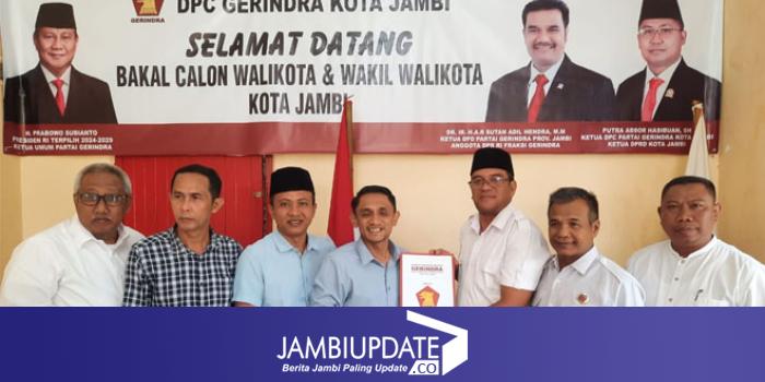 JAMBIUPDATE.CO, JAMBI- Eko Setiawan menjadi calon pertama yang mendaftar sebagai Bakal Calon Walikota Jambi ke DPC Partai Gerindra Kota Jambi pada hari pertama pembukaan penjaringan, Senin (29/4/2024).