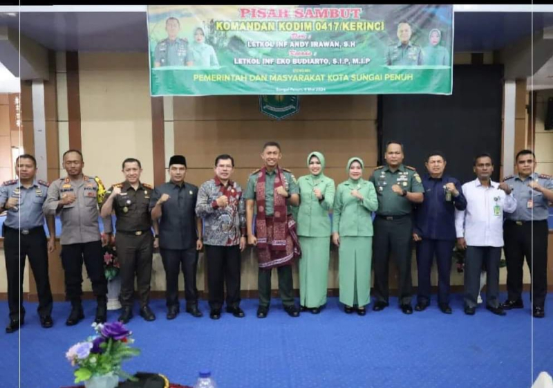 "Saya ucapkan selamat datang kepada Letkol Inf Eko Budiarto,S.I.P, M.I.P, selamat bertugas dan semoga kita tetap bersinergi dan harapnnya kedepan bisa membantu Kota Sungai Penuh dalam segala persoalan dan kita tetap berkomunikasi,"tambahnya
