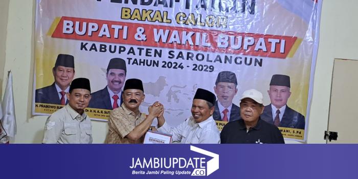 JAMBIUPDATE.CO, SAROLANGUN- Usai mengembalikan berkas formulir sebagai Calon Bupati Sarolangun di partai Nasdem pada pagi hari, Muhammad Fauzi juga mengembalikan berkas sebagai Calon Bupati Sarolangun pada siang hari nya di DPC Gerindra, selasa (07/5/2024).