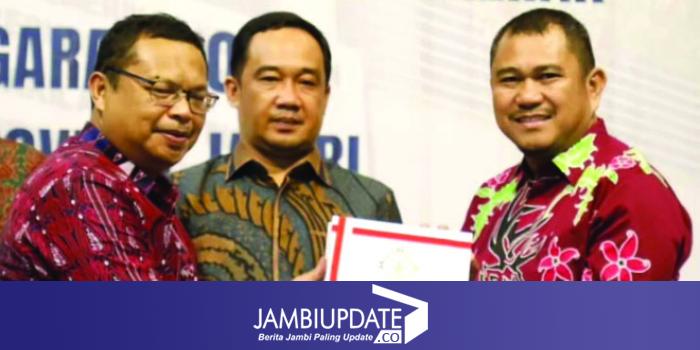 Saat menerima penghargaan, Bupati Mashuri didampingi Wakil Ketua I DPRD Bungo Jumiwan Aguza SM, MM, Sekda Mursidi, Inspektur dan Kepala Badan Pengelola Keuangan dan Aset Daerah.