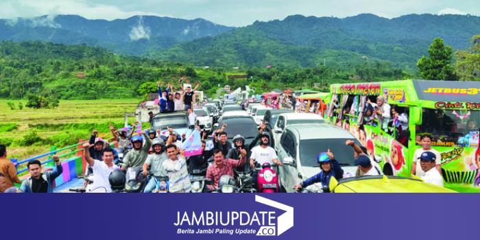 Ratusan masyarakat wilayah kerinci hilir yang datang untuk mendampingi Monadi mendaftarkan sebagai calon Bupati Kerinci ada yang mengendarai sepeda motor bahkan mobil.