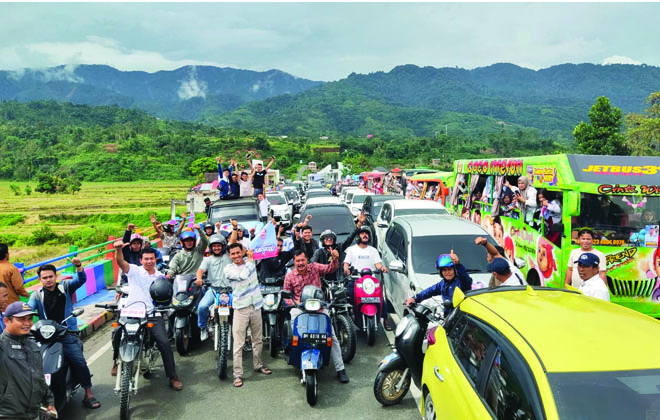 Hal tersebut nampak disaat beriringan konvoi dari jembatan pelangi Siulak hingga berhujan hujanan menuju tempat pendaftaran.