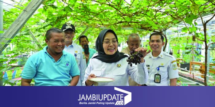 JAMBIUPDATE.CO, JAMBI- Penjabat Walikota Jambi, Sri Purwaningsih, bersama jajaran terkait melakukan kunjungan ke lokasi kebun anggur, di Kelurahan Pakuan Baru, Jambi Selatan, Kota Jambi, Rabu (8/5/2024).