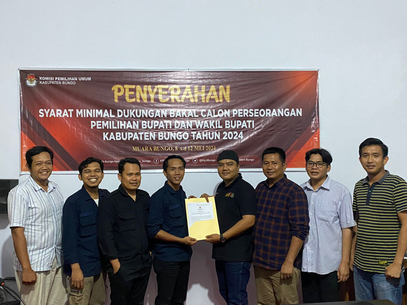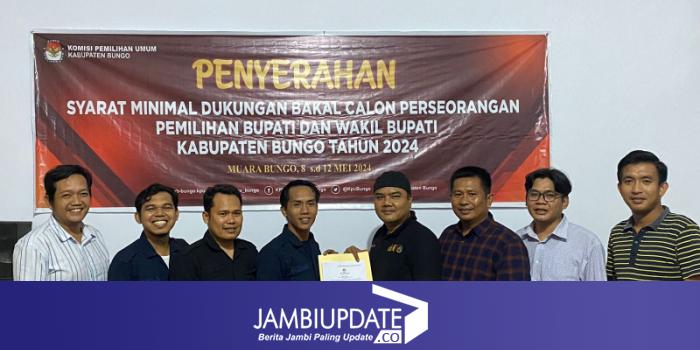"Terhitung mulai dari 08 s/d 12 Mei 2024 waktu penyerahan dokumen syarat dukungan oleh pasangan calon perseorangan atau independen pada Pemilihan Kepala Daerah kabupaten Bungo, kami dari KPU belum menerima pendaftar perseorangan hingga batas akhir yang sudah ditentukan," jelas Hardianus Senin dini hari (13/05/2024).