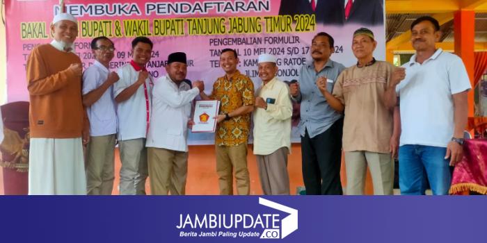 JAMBIUPDATE.CO, MUARASABAK - Resmi mendaftar di Gerindra, Muslimin Tanja kembalikan formulir pendaftaran ke Panitia Penjaringan Bacabup DPC Gerindra Tanjabtim, di Aula Pertemuan Kampoeng Ratoe, Senin (14/5) sore.