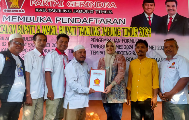 Hal itu disampaikan Dillah Hich usai menyerahkan langsung formulir pendaftaran kepada Ketua DPC Gerindra Kabupaten Tanjabtim, Ashar Idris yang disaksikan langsung oleh Sekjen, Danton, Ketua Panitia Pendaftaran dan Penjaringan Bacabup, Usman, Wakil Ketua Panitia, Arafik serta para pengurus partai Gerindra DPC Tanjabtim di Aula pertemuan Kampoeng Ratoe Muara Sabak.
