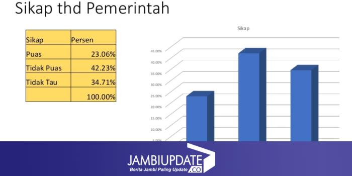 Temuan PKS dalam survei ini cukup mengejutkan. Tingkat kepuasan terhadap pemerintahan Ahmadi Zubir hanya 23,06 persen. Angka terlalu senjang, sebab terdapat 43,23 persen masyarakat menyatakan tidak puas dengan kinerja pemerintah, sisanya 34,71 persen menyatakan tidak tau.