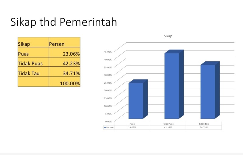 Menurutnya, ini semua menjadi harapan-harapan dasar yang dimiliki oleh masyarakat. Semakin banyak harapan atau ekspektasi yang tidak terpenuhi, maka semakin tinggi orang tidak puas dengan kinerja petahana.