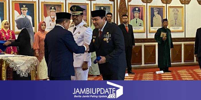 Selanjutnya prosesi pelantikan Pj Bupati Muaro Jambi dan Pj Bupati Sarolangun di auditorium Rumah Dinas Gubernur yang dipimpin langsung Gubernur Jambi, Al Haris.