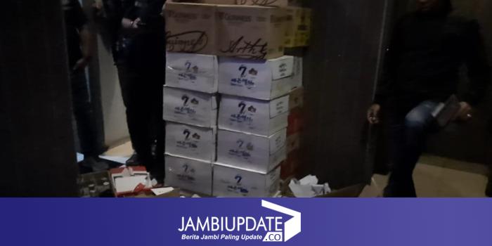 Tim Satresnarkoba Polresta Jambi kemudian mendapati dan mengamankan belasan dus minuman keras (miras) berbagai merk dari Diva Family Karaoke.
