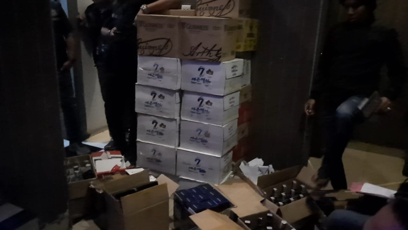 Setelah menunggu hampir sekitar satu jam dengan berbagai alasan, akhirnya karyawan Afgan Karaoke baru membuka kantor staf tersebut dan ditemukan banyak miras dengan berbagai merk dari luar.
