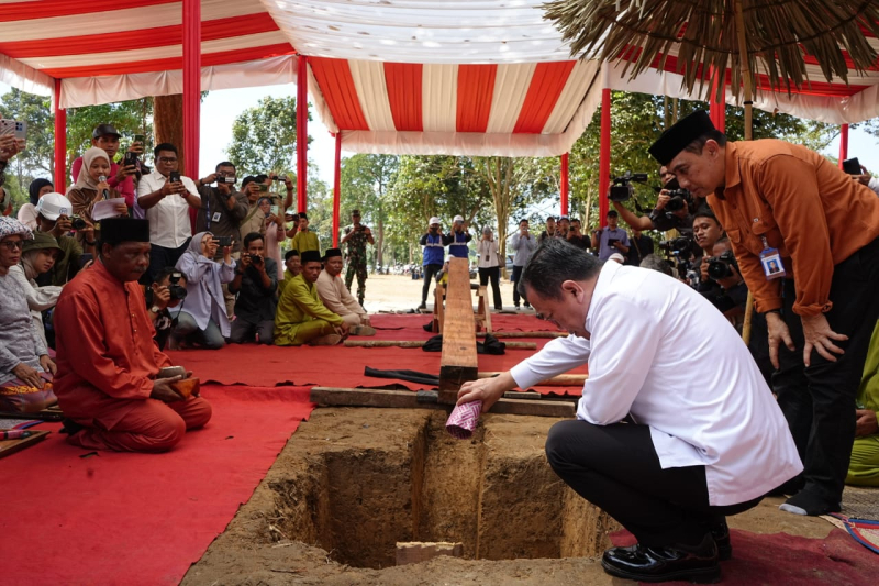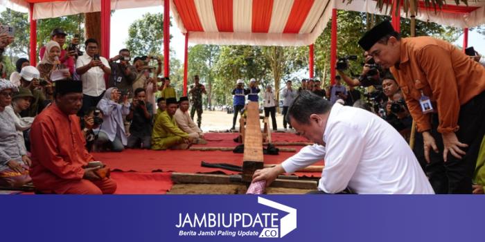 JAMBIUPDATE.CO, MUARO JAMBI - Gubernur Jambi Dr. H. Al Haris, S.Sos, MH mengawali proses peletakan tiang pancang mega-proyek Revitalisasi Kawasan Cagar Budaya Nasional (KCBN) Muarajambi di kawasan Candi Muaro Jambi, Kabupaten Muaro Jambi, Provinsi Jambi, Rabu (05/06/2024).