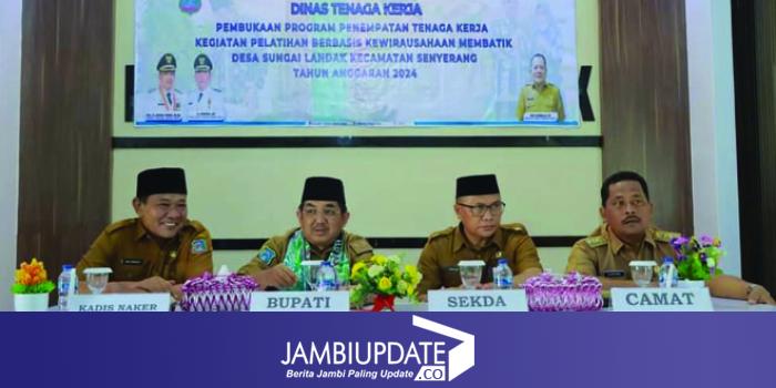JAMBIUPDATE.CO, KUALA TUNGKAL– Bupati Tanjung Jabung Barat, Drs. Anwar Sadat, M.Ag, mengungkapkan bahwa pelatihan membatik berbasis kewirausahaan merupakan langkah strategis untuk menciptakan tenaga kerja yang kompeten dan bermental wirausaha. Hal tersebut disampaikan saat membuka pelatihan membatik oleh Dinas Tenaga Kerja Kabupaten Tanjung Jabung Barat di Aula Kantor Desa Sungai Landak.