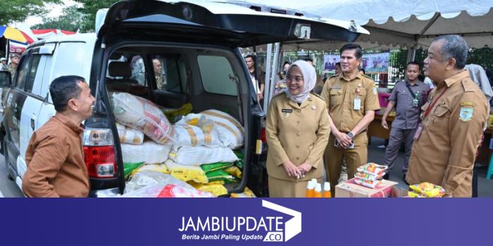 JAMBIUPDATE.CO, JAMBI- Penjabat Walikota Jambi Sri Purwaningsih meninjau langsung Gerakan Pangan Murah (GPM) oleh Pemerintah Kota Jambi, Selasa (11/6/2024).