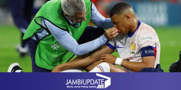 JAMBIUPDATE.CO,- Kapten Timnas Prancis Kylian Mbappe mengalami cedera patah tulang hidung saat mengantar Les Bleus menang 1-0 atas Austria pada pertandingan grup D Piala Eropa 2024 (Euro 2024) di Dusseldorf, Selasa dinihari WIB, 18 Juni 2024.