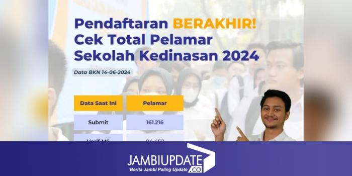 JAMBIUPDATE.CO, JAKARTA - Pendaftaran seleksi sekolah kedinasan tahun anggaran 2024 telah ditutup pada Kamis, 13 Juni 2024.