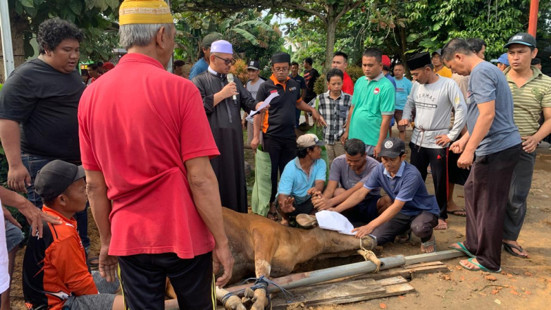 Selain sumbangan satu sapi dari Romi Haryanto, warga setempat juga menyembelih 3 ekor sapi lainnya dan 1 ekor kambing.