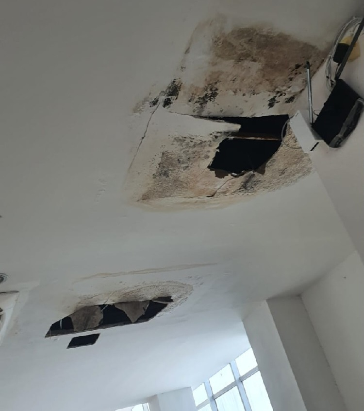 Selain itu, kondisi AC pada rumah sakit juga banyak yang rembes. Sangat terlihat dari plafon gedung banyak yang bocor.