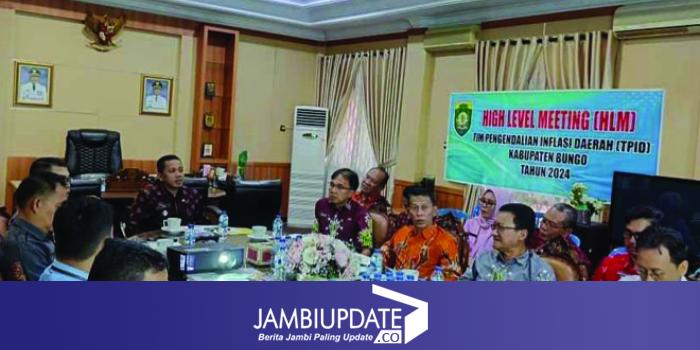 JAMBIUPDATE.CO, MUARA BUNGO–Wakil Bupati Bungo H. Safrudin Dwi Aprianto, memimpin rapat High Level Meeting (HLM) Tim Pengendalian Inflasi Daerah (TPID) Kabupaten Bungo tahun 2024.Rapat berlangsung di ruang Kerja Wakil Bupati yang dihadiri oleh Unsur Forkopimda dan sejumlah kepala OPD di lingkup Pemda Bungo.