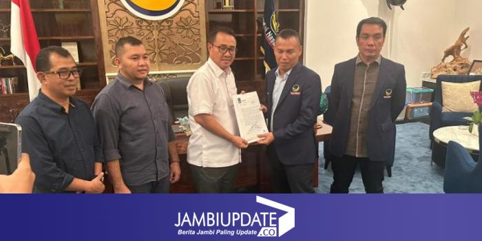 JAMBIUPDATE.CO, SUNGAI PENUH - Alfin, SH, resmi menerima rekomendasi dari Dewan Pimpinan Pusat (DPP) Partai NasDem untuk maju sebagai calon Wali Kota Sungai Penuh pada Pemilihan walikota sungai penuh mendatang. Rekomendasi tersebut diserahkan langsung oleh Pengurus DPP Partai NasDem, Fauzi Amro, didampingi Sekretaris Dewan Pimpinan Wilayah (DPW) NasDem Jambi, Hasbi Ansori, dalam acara yang digelar di kantor Nasdem Tower jakarta