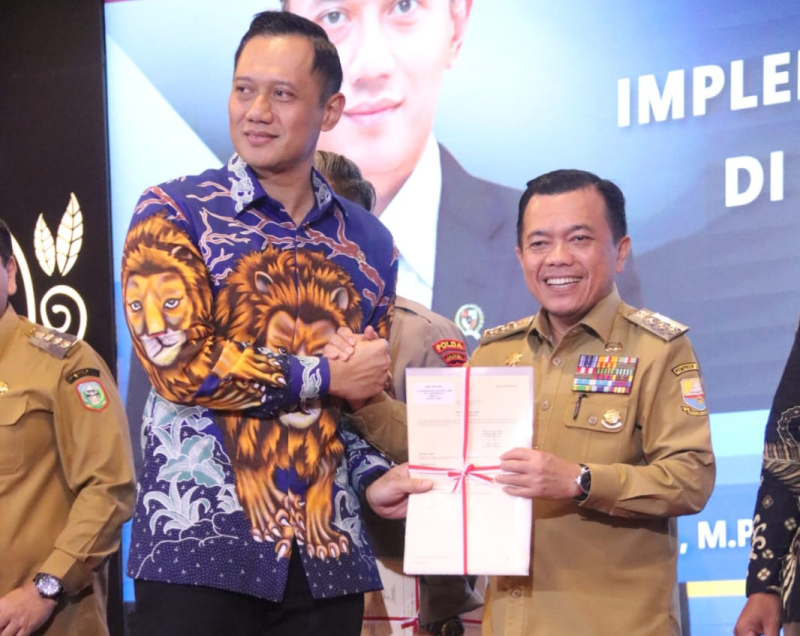 JAMBIUPDATE.CO, JAMBI - Menteri Agraria Dan Tata Ruang/ Kepala Badan Pertanahan Nasional (ATR/BPN) H. Agus Harimurti Yudhoyono, M.Sc., M.P.A., MA (AHY) memuji kinerja Gubernur Jambi Dr. H. Al Haris, S.Sos., MH dalam menyukseskan program reforma Agraria di Provinsi Jambi. Hal tersebut disampaikannya dalam acara Implementasi Sertifikat Elektronik di Tujuh Kantor Pertanahan di Provinsi Jambi, bertempat di Auditorium Rumah Dinas Gubernur Jambi, Selasa (25/06/2024).