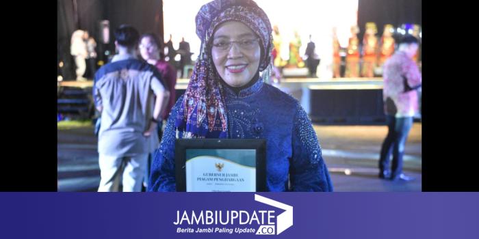 Usai menerima penghargaan tersebut, Pj Wali Kota Jambi Sri Purwaningsih menyampaikan apresiasinya.