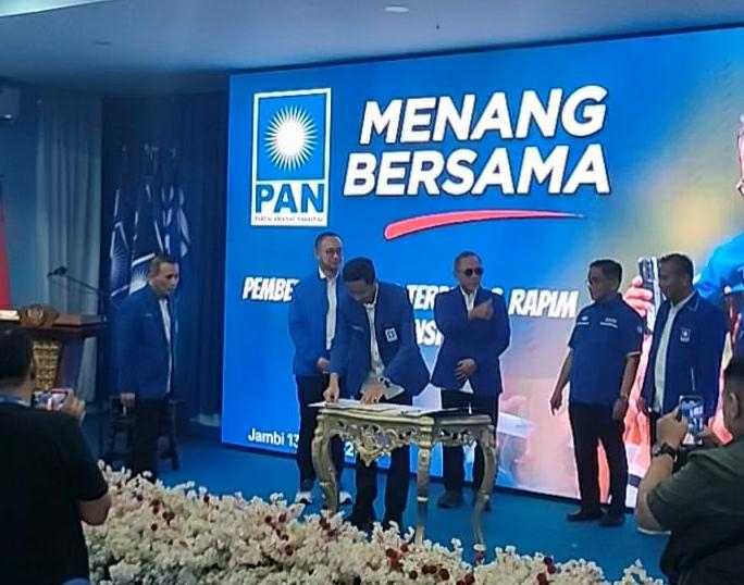 JAMBIUPDATE.CO, JAMBI- Calon anggota legislatif (Caleg) terpilih Partai Amanat Nasional (PAN) Jambi menandatangani fakta integritas usai mengikuti pembekalan, Sabtu (13/6/2024). Penandatanganan fakta integritas ini dilakukan dihadapan Ketua Umum PAN Zulkifli Hasan (Zulhas) dan Sekretaris Jenderal (Sekjen) Edy Soeparno.