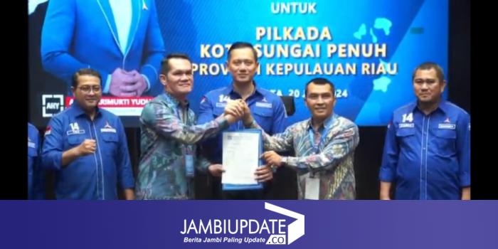 JAMBIUPDATE.CO, SUNGAIPENUH- Langkah Alvia Santoni (Antos) menuju Pilwako Sungaipenuh 2024 kian kokoh. Setelah sebelumnya telah mengantongi rekomendasi dari PPP, sore ini (20/7/2024) Antos resmi menerima rekomendasi dari Partai Demokrat.