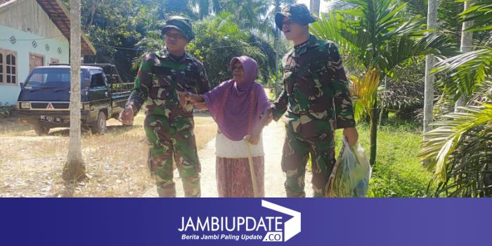 JAMBIUPDATE.CO, JAMBI - Satgas TMMD ke 121 Kodim 0415 Jambi, membantu seorang nenek lansia berjalan usai pulang dari dari pasar.