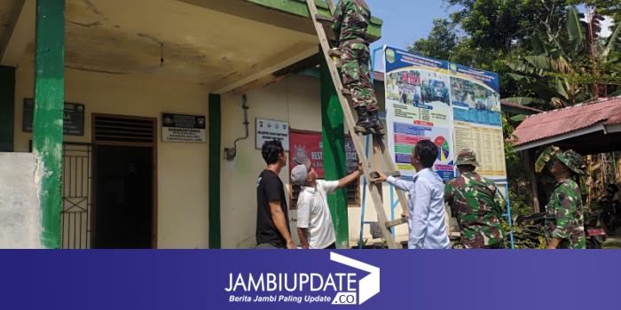 JAMBIUPDATE.CO, JAMBI - Guna mempercantik bangunan, Satgas TMMD ke 121 Kodim 0415 JAMBI dan masyarakat serta mahasiswa mengecat bangunan kantor Desa Suka Maju, Kecamatan Mestong, Kabupaten Muaro Jambi.