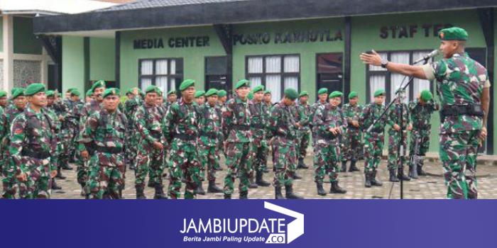 iklan Dandim 0416/Bute, Letkol Inf Arief Widyanto memberikan arahan dihadapan prajurit untuk memantau titik hot spot.