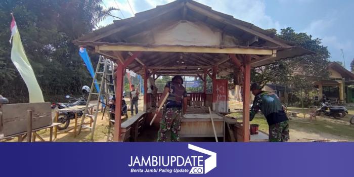 JAMBIUPDATE.CO, JAMBI - Satuan Tugas (Satgas) TNI Manunggal Membangun Desa (TMMD) Kodim 0415 JAMBI, bersama masyarakat melakukan perehaban pos keamanan lingkungan (poskamling) untuk keamanan dan ketertiban lingkungan.